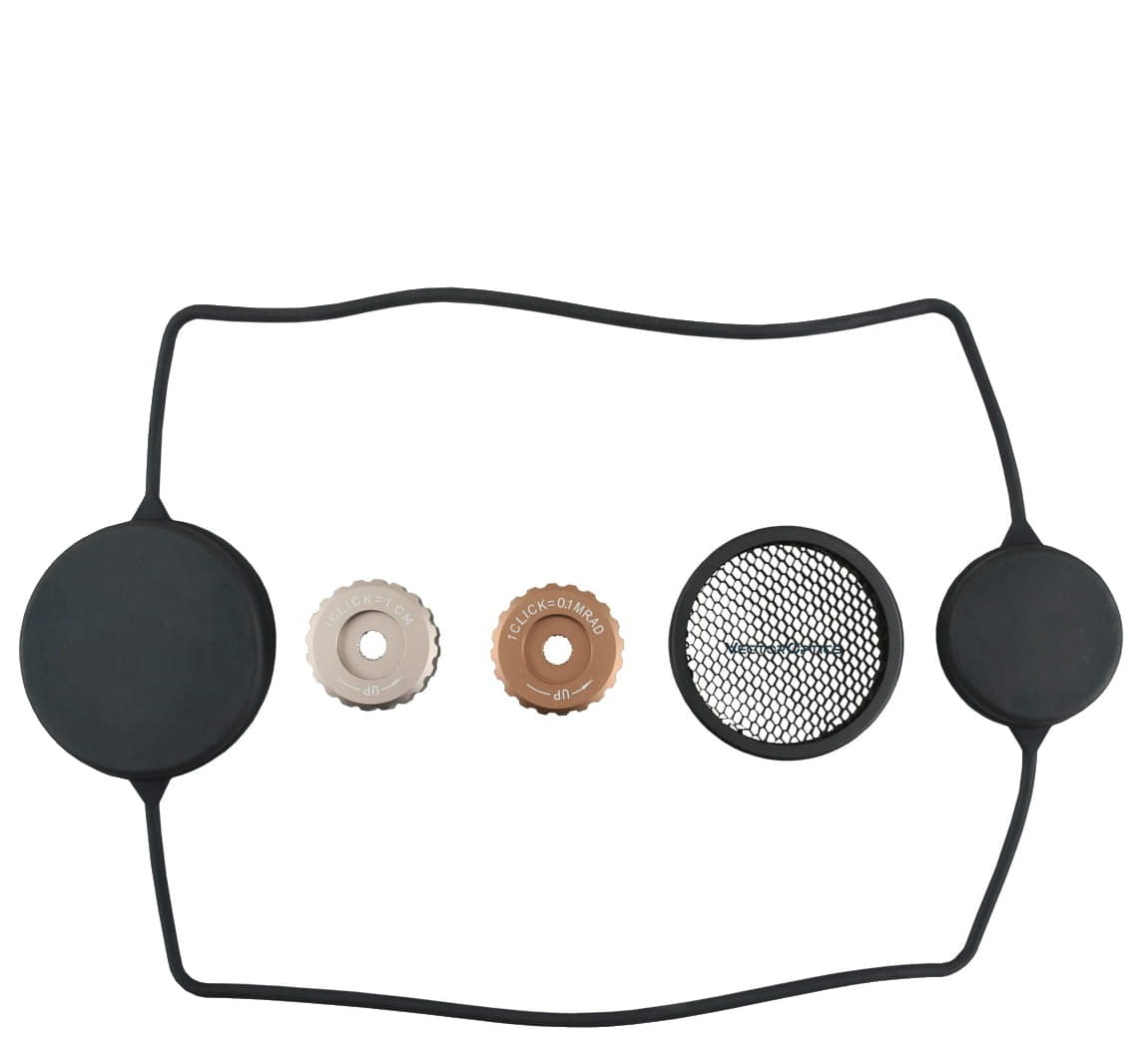 • W zestawie: aluminiowy montaż na szynę 21 mm Picatinny / Weaver, osłona soczewek na gumie, osłona obiektywu typu „Honeycomb Sunshade”, zapasowe nakrętki wieżyczek regulacji, bateria, ściereczka do czyszczenia optyki, karta gwarancyjna T-VIP